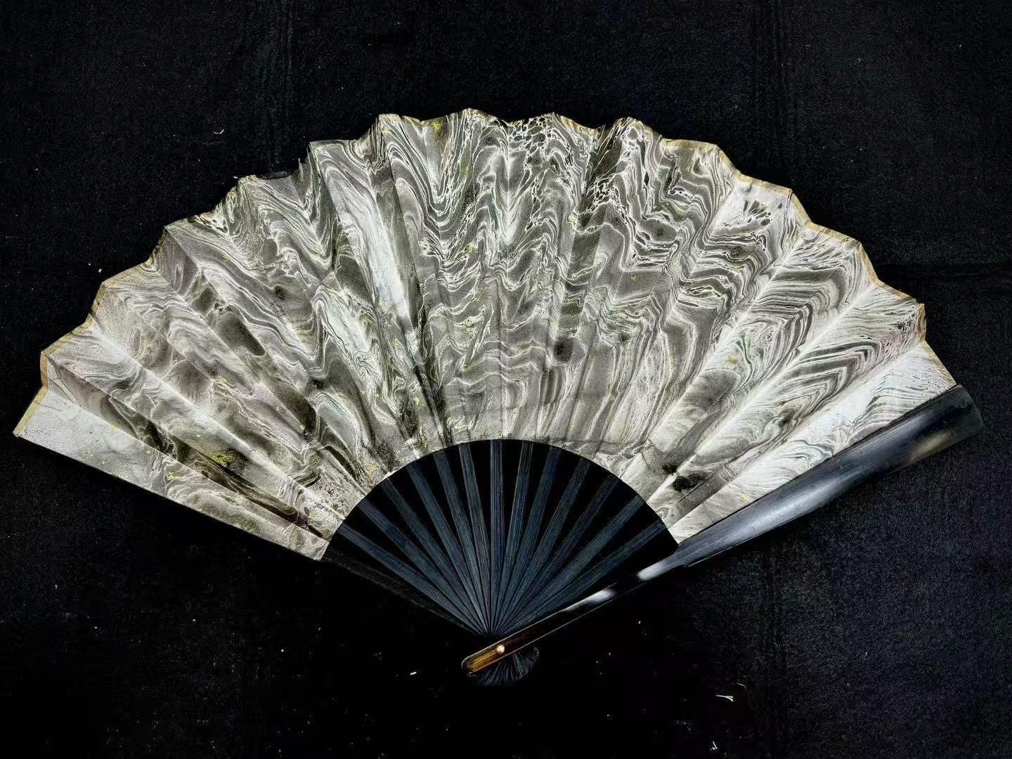 With swirling black-and-white patterns, this fan breathes quiet power.
