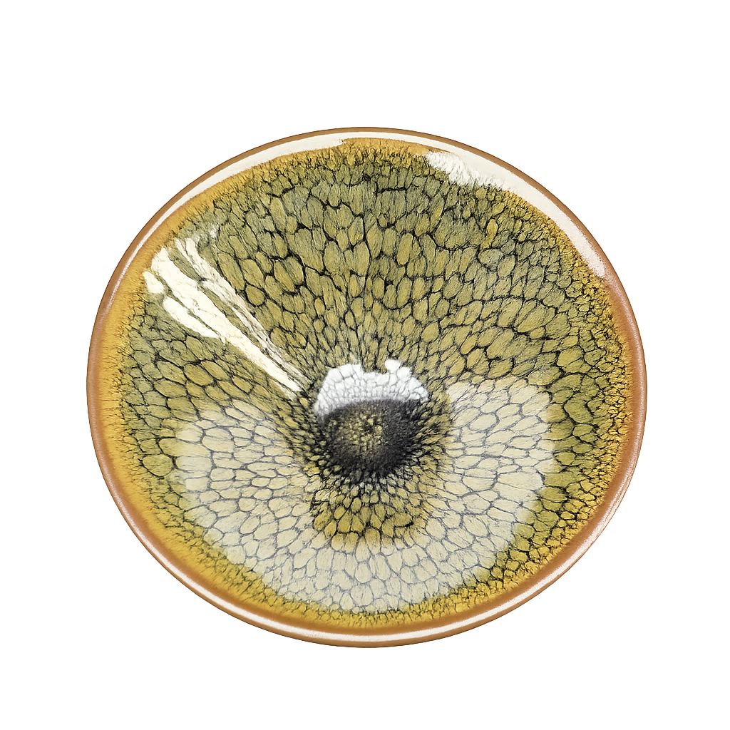 Radiating crystalline Tenmoku patterns that look like starlight—each bowl uniquely revealed by fire. Hand-thrown and high-fired in the spirit of Song-dynasty JianZhan, every piece shows its own crystalline “constellations.”
